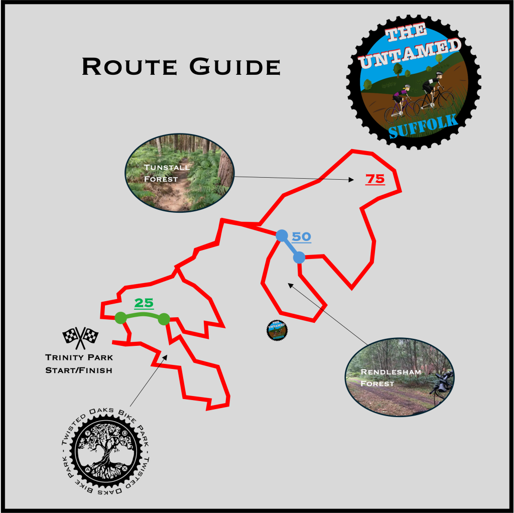 We have worked hard with our friends and partners at both Elmy Cycles and Twisted Oaks Bike Park to craft unforgettable routes for you to enjoy. Get the best of both worlds with quiet country roads and peaceful off-road trails. Visiting both Tunstall & Rendlesham Forests, there will be plenty of gorgeous off-road fun to be had. Also, our riders will get exclusive access to a new bespoke built off-road trail at Twisted Oaks Bike Park around the Brightwell Country Park.