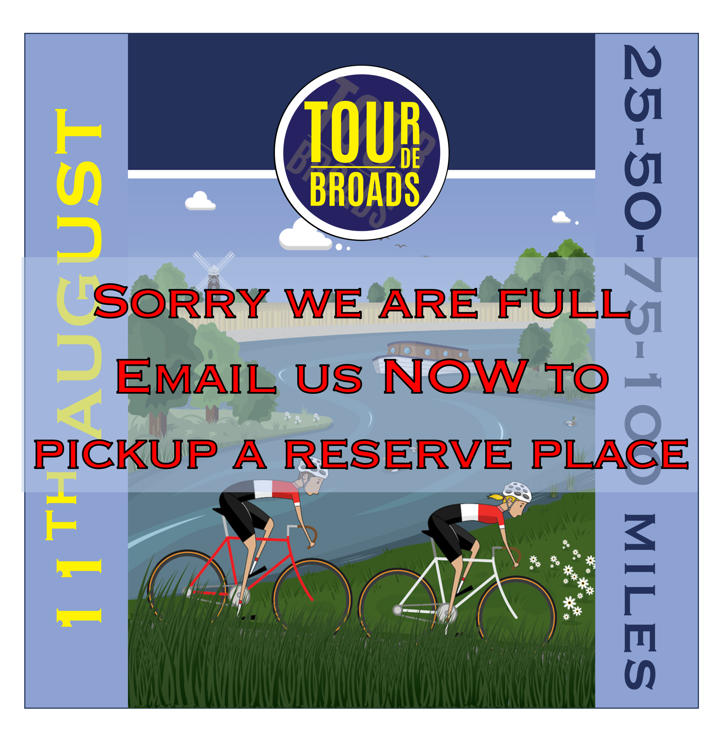 Tour de Broads 2024 SOLD OUT!Neil TurnerAugust 7, 2024News Sorry, all the rides on our 2024 Tour de Broads have sold out and we are full! Email RIDE@TPRevents.co.uk to register for a reserve place… Click Here for More